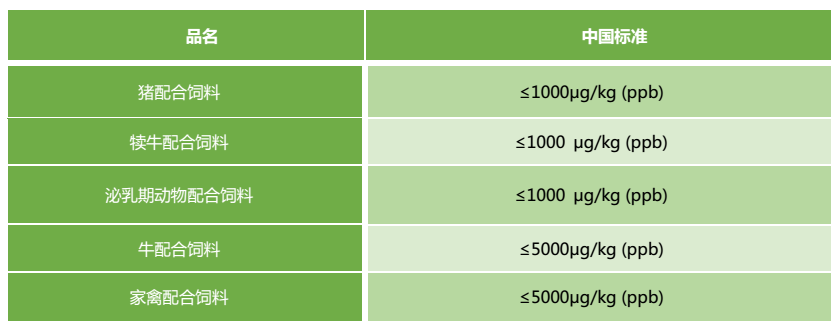 3.1、中國嘔吐毒素限量標(biāo)準(zhǔn) (飼料)