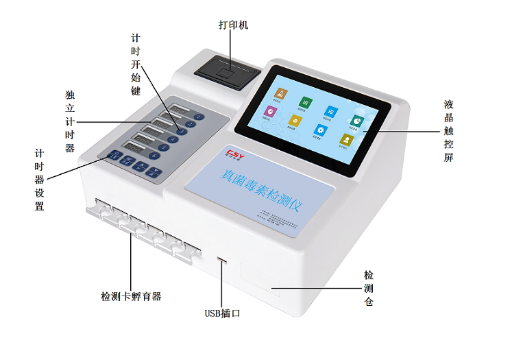 深圳市芬析儀器制造有限公司(深芬儀器)CSY-YG701黃曲霉毒素測定儀通過檢測線熒光定量卡中的熒光強(qiáng)弱程度,定量分析待檢樣品中黃曲霉毒素B1殘留含量;能夠快速定量檢測玉米、小麥、大米、大麥、小米和燕麥等谷物、飼料、面粉、食用油、調(diào)味品中黃曲霉毒素B1,黃曲霉毒素測定儀適用于糧庫收糧檢測、糧油監(jiān)測中心、糧油飼料生產(chǎn)加工、食品加工貿(mào)易、畜禽養(yǎng)殖戶自查、質(zhì)監(jiān)部門用于市場快速篩查等。